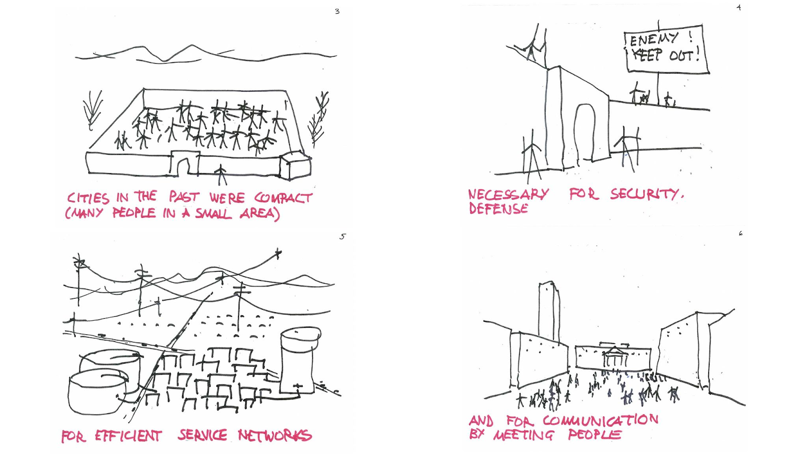 Kun kaupunkisuunnittelija sijoittaa jalankulku- ja ajoväylien varteen yhdyskunnalle tärkeitä toimintoja, hän määrää ennakolta painopisteet, joiden ympärille kaupunkitila rakentuu. Näin syntyy mukautuva ja avoin kaupunkirakenne, eräänlainen kehys tuleville tapahtumille, joita ei voi täysin ennustaa. Ennakolta määritellyn kaupunkirakenteen pohjalta on mahdollista kehittää erilaisia arkkitehtonisia ratkaisuja.